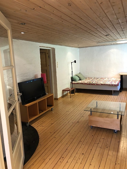 Alle hvitevarer. Møblert. Wifi inkludert. 12000 kr/mnd + strøm (egen måler). Adgang hage med sitteplass.