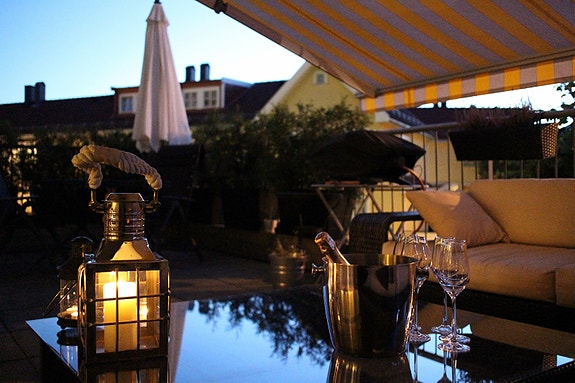- 23kvm privat vestvendt terrasse som ligger på taket av butikkene i gaten.