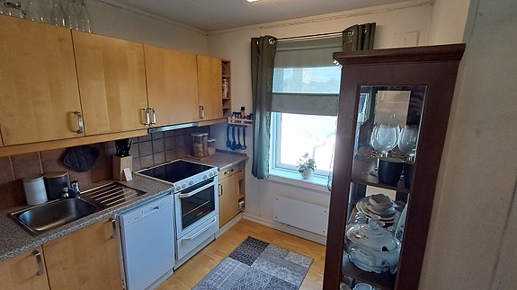 Leiligheten leies ut med komfyr, oppvaskmaskin og vaskemaskin.