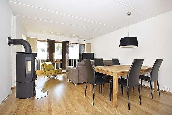 Calm and comfortable apartment with a large hall and garderobe, 3 bedrooms, kitchen with electrical appliance and open solution to the sitting room with exit to the terrace.
