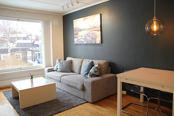Sokkelleilighet til leie på Bekkestua. Leiligheten er lys og ligger på bakkeplan.