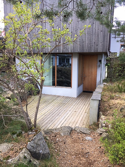 Inngang til leilighet med egen terrasse