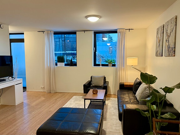 Leiligheten ligger usjenert til, og er del av en ny moderne enebolig.