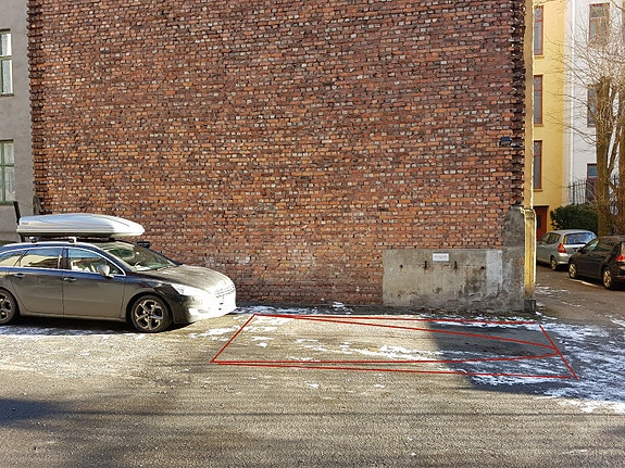 Parkeringsplass i skjermet bakgård i Oscars gate