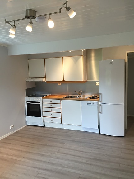 Alle hvitevarer følger med (kombikjøleskap, komfyr, oppvaskmaskin og vaskemaskin).