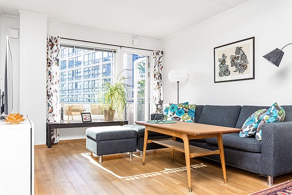 SENTRAL-LYS OG MODERNE 2-ROMS I VIKA-BALKONG-Møblert