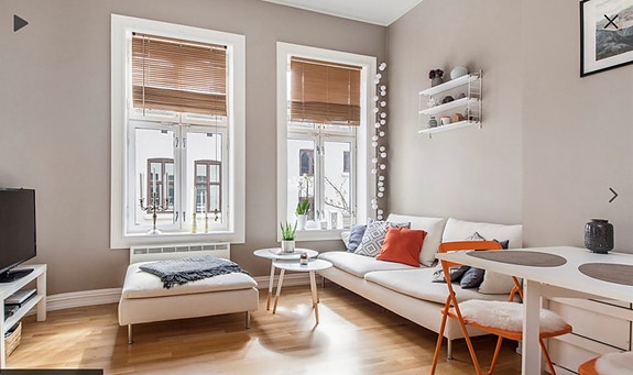 Bemerkes at leiligheten har fått noe slitasje fra da bildene ble tas for noen år siden.