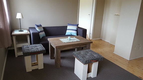Det er gardiner på alle rom, sengetøy som vist på bilder følger ikke leiligh.