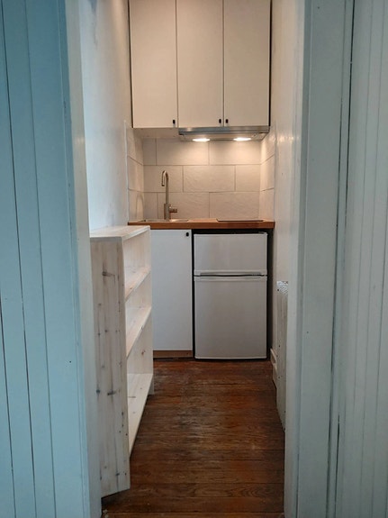 Leiligheten har en gang med garderobe, bad med toalett og dusj. Oppholdsrom og separat minikjøkken.