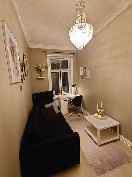 Nyoppusset rom (10 kvm) i Vika, mellom Solli Plass og Aker Brygge/Tjuvholmen til leie. Bindingstid frem til 15. august 2026 (kan forlenges til 2027 hvis ønskelig).