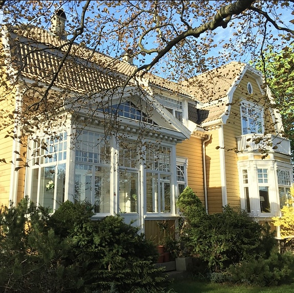 Herregård fra tidlig 1900 leies ut på ubestemt tid. Huset er totalrenovert i historisk riktig stil, men med moderne løsninger (som f.eks. fjellvarme i alle gulv i 1. etasje (og på bad i 2. etasje), klimaanlegg og to elbilladere i carport). 1. etasje har bl.a. tre store stuer, toalettrom, kjøkken og grovkjøkken. I 2. etasje finner du fem soverom og to bad. Hagen er på 2, 5 mål og har flotte parktrær, bærbusker og akebakke om vinteren.