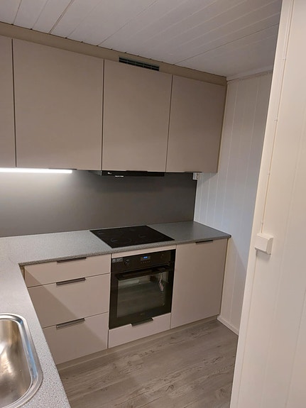 Solrikt med sjøutsikt .Nær strender og kyststien. Buss 2 ganger i timen til sentrum og videregående skoler. Carport liten hage med uteplass . Gang avstand til sjøen med strender , kyststier og Vesterøy skole . Leiligheten har egen inngang , entre , bad , stue , nytt kjøkken med kjøl/frys , stekeovn , koketopp , ventilator . oppvaskmaskin ,alt i stål og nytt , ett stort soverom ,ett vanlig soverom , begge med plass til dobbel seng , Leiligheten ligger sydvest vendt og sol til langt på kvelden i enden av blindvei med snuplass . Leiligheten er umøblert