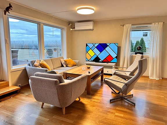 Rom til leie på Vear – stilfull leilighet med fjordglimt fra stor takterrasse