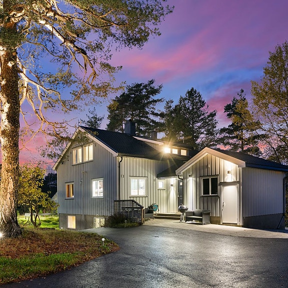 Denne eiendommen fremstår som en sjelden mulighet for de som søker et usjenert og idyllisk hjem. Med en stor og solrik tomt tilbyr den rikelig med plass og natur rundt seg. Boligen er fordelt over tre plan og ligger i de landlige omgivelsene i Nordre Frogn, nær Nesodden. Interiøret er innbydende med en lys entré, et stort kjøkken og flere romslige oppholdsrom. Den østlige delen av hagen var tidligere et gammelt jordbruksareal og egner seg svært godt for dyrking. Den vestlige delen av tomten består av plen.