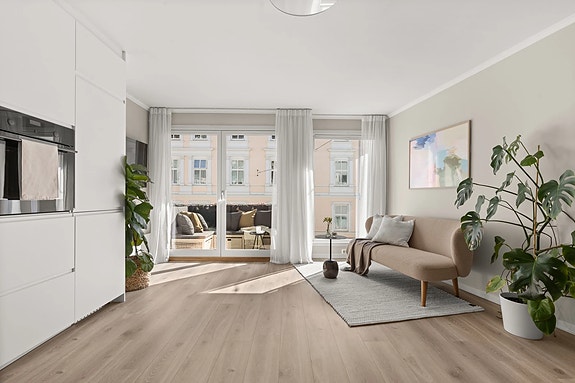 Leiligheten passer godt for deg som ønsker å bo sentralt, men likevel tilbaketrukket.