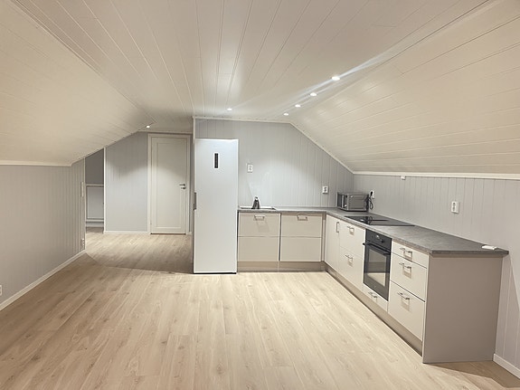 Nyrenovert leilighet i øverste etasje av en enebolig til leie i attraktive Halden, Brødløs. Leiligheten ble totalrenovert forrige måned og fremstår som svært moderne og innbydende. Alt er nytt – både det flotte badet og det stilrene kjøkkenet, samt tre romslige soverom.