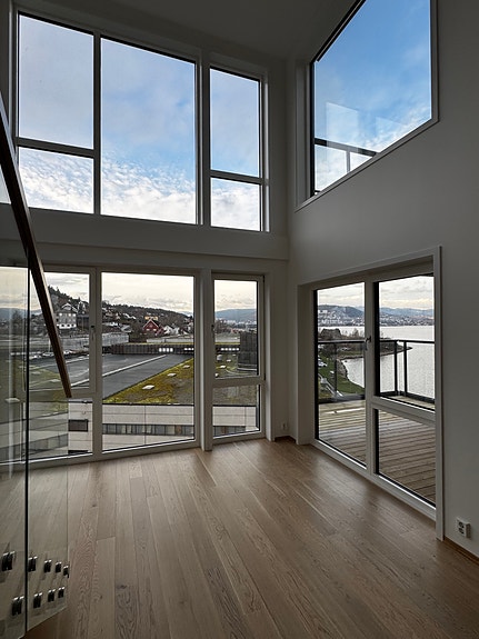 Helt ny og ubebodd toppleilighet over to etasjer i fjordkanten like utenfor Drammen sentrum leies ut. Ca 4 km til Drammen sentrum og jernbanestasjonen. Nærmeste busstopp er ca 200 meter fra døren. Flotte turområder ca 500 meter fra leiligheten. Under 100 meter til vannkanten og flott bryggeanlegg.