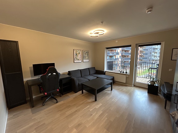 Boligen leies ut delvis møblert og inneholder blant annet seng, sofa, sofabord samt TV.