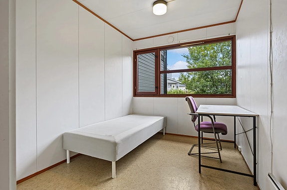 - Alle hyblene er på ca 18 kvm og består av: Kombinert stue og soverom, eget hybelkjøkken med komfyr og enkel kjøkkeninnredning, bad med dusjsone og gulvstående klosett.