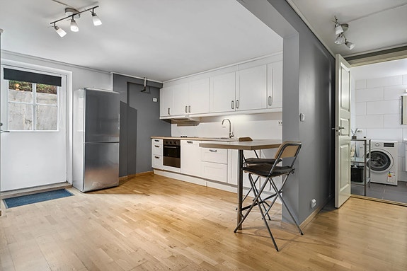 Følgende hvitevarer medfølger: kombi-kjøleskap, komfyr, oppvaskmaskin, tv og mulighet for medfølgende vaskemaskin.