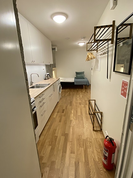 Hybelleiligheten ble bygget i 2019 og det er balansert ventilasjon og varme i alle gulv.