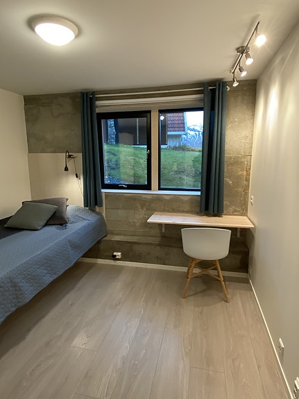Leiligheten / hyblene var bygget i 2019 og det er balansert ventilasjon og varme i alle gulv.