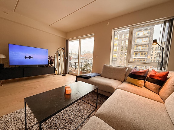 Lys og trivelig 4-roms leilighet i moderne bygg fra 2020 – ledig for leie fra 1. mai til 31. desember 2026. Sentral og populær beliggenhet mellom Ensjø og Kampen. Leiligheten er på 92 m² og inneholder entré, tre soverom, stue med åpen kjøkkenløsning, to bad samt innvendig bod på store soverom (walk-in closet). Per nå fungerer det ene gjesterommet som hjemmekontor, men kan konverteres til soverom etter avtale.