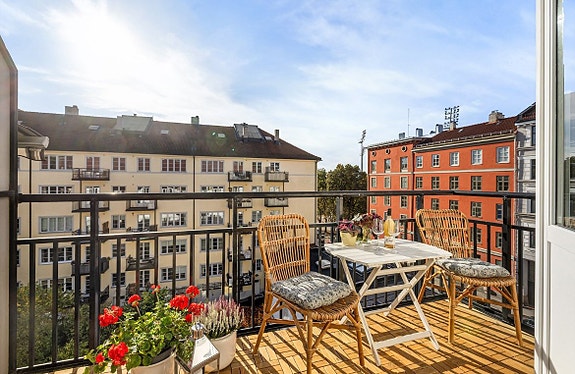 - Romslig, vestvendt balkong med svært gode solforhold