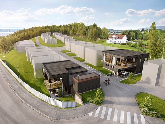 På toppen av Kjønstadmarka kommer nå to nye, stilrene eneboliger med flotte solforhold og utsikt.