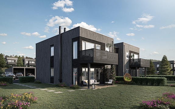 Hellvik Hus Sør AS skal bygge disse 4-mannsboligene på noen solrike, sør/vest vendte tomter, og mulighet for utsikt mot Mandal sentrum.