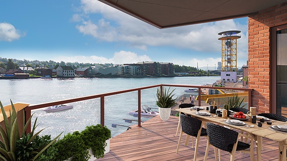 De første boligene vi lanserer på Porsgrunn Mek. omfatter to bygg med totalt 42 nye hjem. Vi har valgt å kalle de nye byggene opp etter båtene som en gang ble bygd her. Diagara og Dione ligger begge vestvendt langs dokka. Byggene byr på et bredt utvalg av størrelser og leilighetstyper. Terrassene til boligene i første etasje er optimalisert for å sikre best mulig solforhold og utsikt. Boligene i de andre etasjene har luftige balkonger. Noen av leilighetene får dessuten to uteplasser.