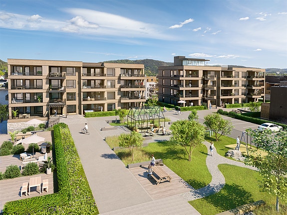 På høydedraget sentralt på Vestsiden fortsetter vi nå utbyggingen. 31 boliger er ferdigstilt, og ca 80 leiligheter er under utvikling. Først ut er to leilighetsbygg med totalt 34 leiligheter. Her blir det mye å glede seg til: