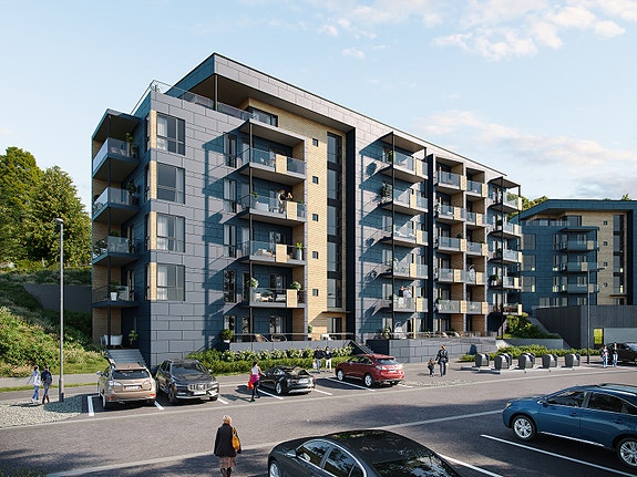Flere av leilighetene vil ha fin utsikt, og gode sol- og lysforhold.