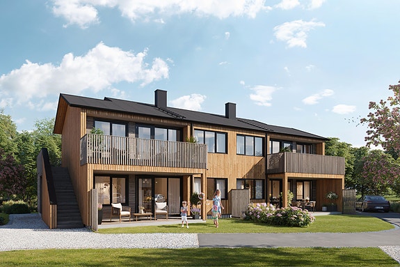 Bebyggelsen på Bruholmen Hage vil bli variert, her finner du alt fra frittliggende eneboliger og rekkehus til leiligheter. Vårt mål er å treffe alle aldersgrupper for å skape et godt og variert bomiljø. Mellom de nye hjemmene bygges det flere lekeplasser og grøntområder. Her skal det være godt å bo for mennesker i alle aldergrupper og livssituasjoner.