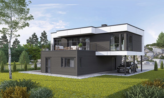 Eit moderne hus frå Idehus type Knausen variant m/carport