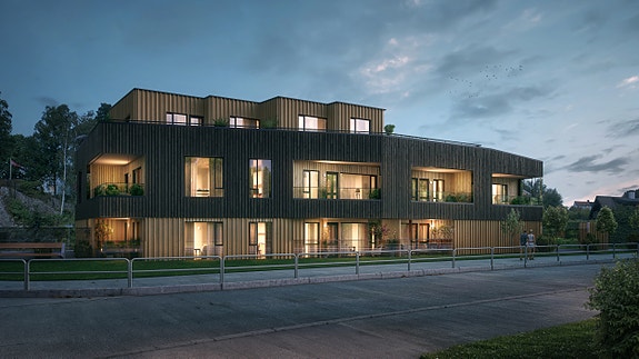 Villa Sætervegen består av 8 lekre leiligheter fra 47 til 124 m² med felles, solrik takterrasse på 96 m².