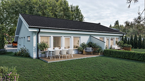 De to nye boligene får god planløsning med alt på ett plan, og utgang til solrik uteplass og hage.