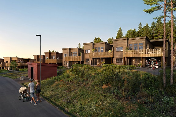 10 eneboliger i kjede. Kommer for salg 1. kvartal 26. Nærhet til natur, shopping og E6.