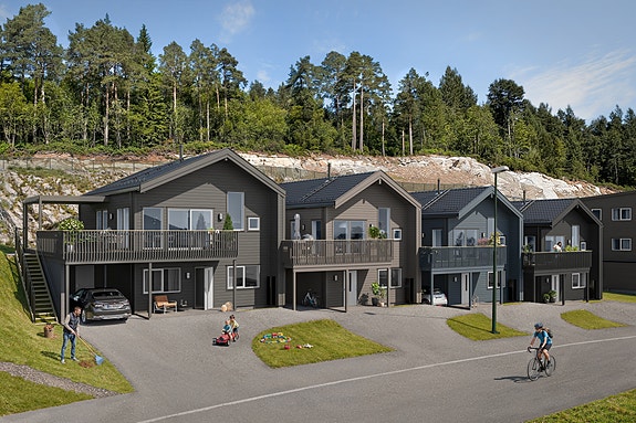 Alle boligene leveres nøkkelferdige med moderne løsninger, kvalitetsmaterialer og gjennomtenkte planløsninger.