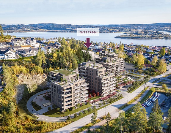 49 flotte nye leiligheter under planlegging. Felles takstue og solrike takterrasser med flott utsikt over Øyeren. Heis fra garasjekjeller.