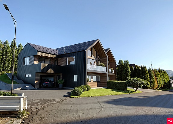 Stilren tomannsbolig med sørvendt beliggenhet og integrert carport
