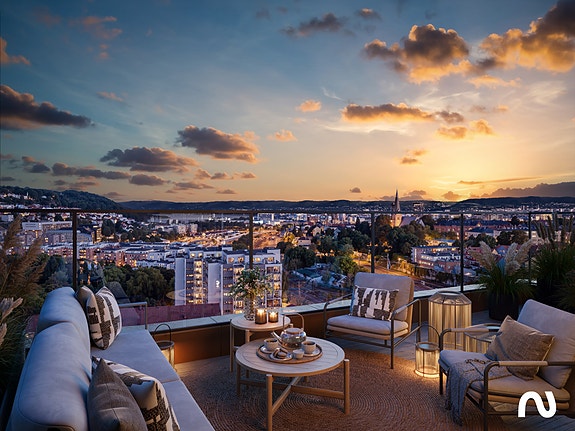 Her bor du helt nær sentrum, med gode solforhold og herlig utsikt utover byen, og samtidig midt i et grønt, frodig og rolig nabolag som gir deg rom til å puste litt roligere når du vil.
