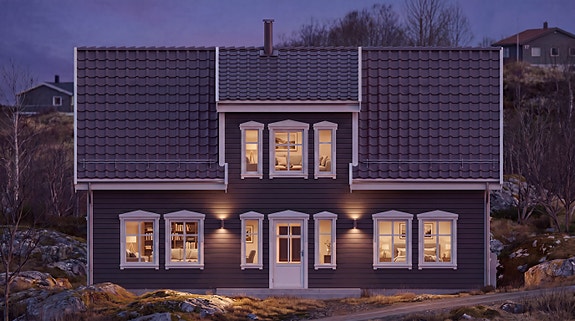 Vi planlegger å bygge huset Bjørkli standard eller Spesial modellen som er med takoppløft og litt størrre i volum fra Huskjeden Boligpartner på ei av dei finaste tomtene på Farsundfeltet i Sunnfjord.