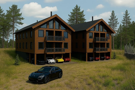 Utbyggingstomt sentralt på Sanderstølen: 8 fritidsleiligheter. Garasjer og vestvendte balkonger