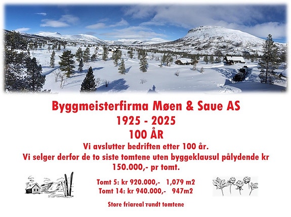 Tomten er påheftet byggeklausul. Dette innebærer at kjøper er forpliktet til å bruke Byggmeisterfirma Møen & Saue AS på Voss til levering av hytta. (ikke montering)