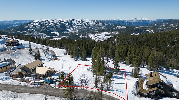 Tomten ligger flott til i et nyetablert hyttefelt på Lifjell - Grostuldalen.