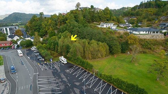 Stor tomt regulert til bolig/parkering i Lyngdal sentrum.