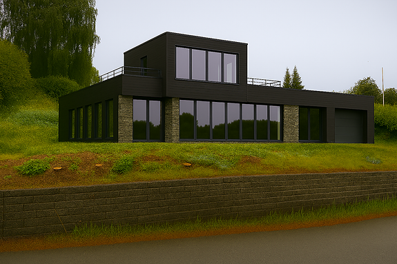 AI-generert bilete av einebustad på tomta