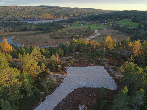 Det er opparbeidet bilvei og tomten er nylig blitt planert.