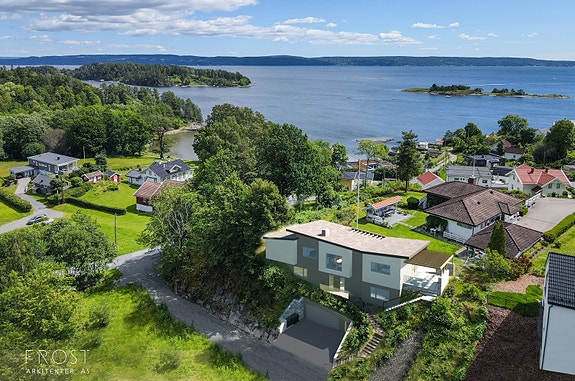 Det er gitt rammetillatelse for en enebolig på 264 kvm BRA tegnet av Frost arkitekter.